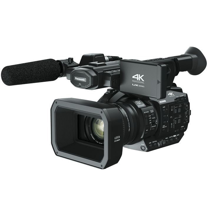 The AG-UX90 is the value model in the 4K UX Professional Camcorder Series, featuring a 1” (effective size) high-sensitivity MOS sensor with 15x optical zoom and a 24.5 mm wide angle lens.